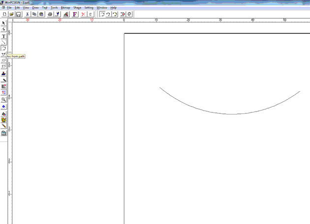 2. Vælg værktøjet ”Arc from path” i værktøjslinien i venstre side og tegn den kurve som du ønsker teksten skal stå i.