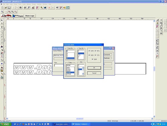 3. Klik på ”Communication” og se om alle indstillinger er sat op som på det viste billede nedenfor. Nedenfor vises standard indstillinger for WinPCsign.