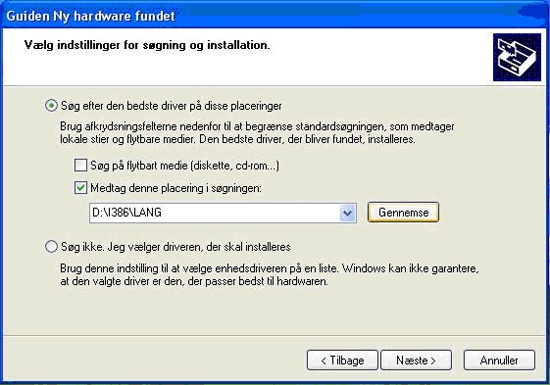 4. Der vælges ”Gennemse”, husk at driver cd’en skal være isat.